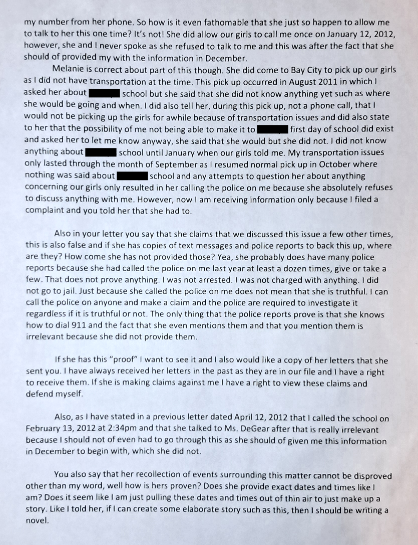 This year I had to file a complaint because Evil Baby Mama was refusing to tell me information about our girls such as their school and medical info. Evil Baby Mama was keeping me out of their lives as much as she could. I had to take her to court to get her to tell me that information. The only reason Evil Baby Mama ever told me anything about our girls is because she was court ordered to do so. Otherwise, I would have known nothing about my girls, other than every other weekend.