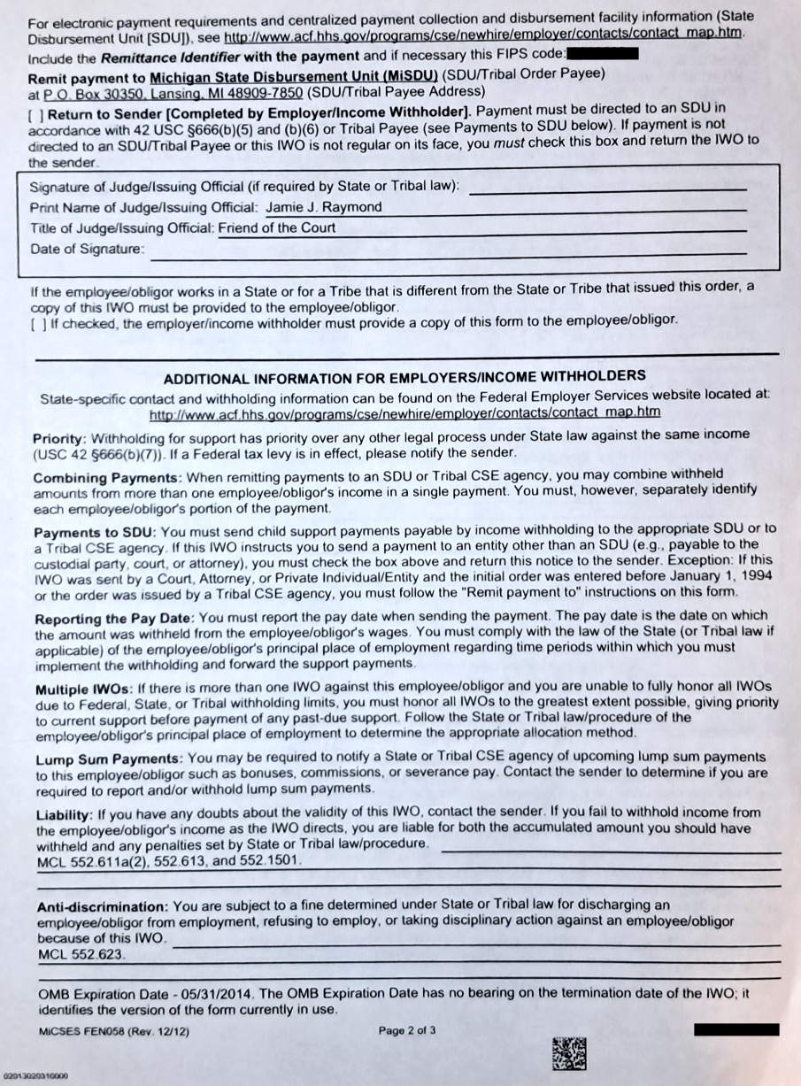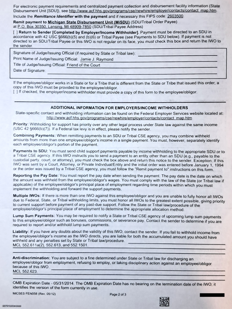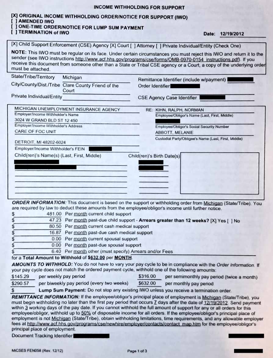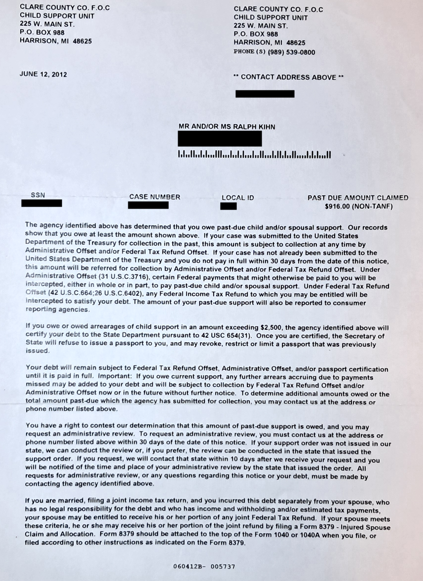 And of course child support is ramping up again. Not much of a break from those clowns.