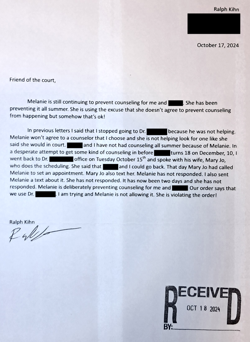 Letter From Court – October 23, 2024