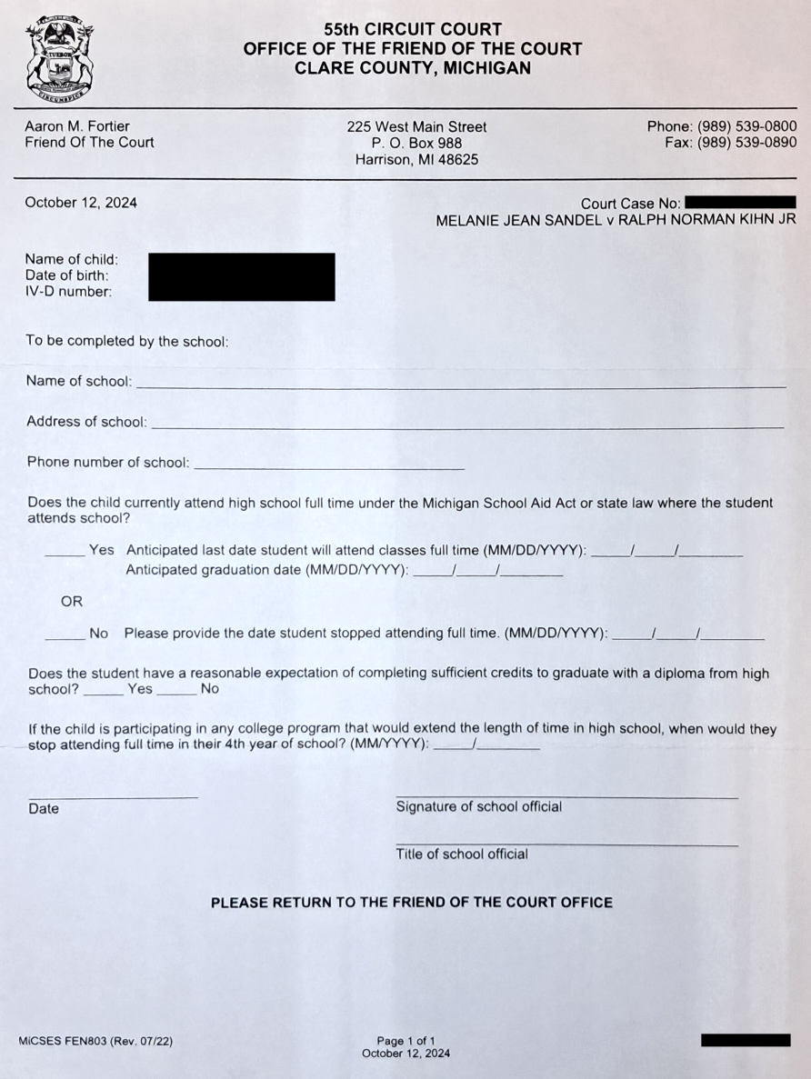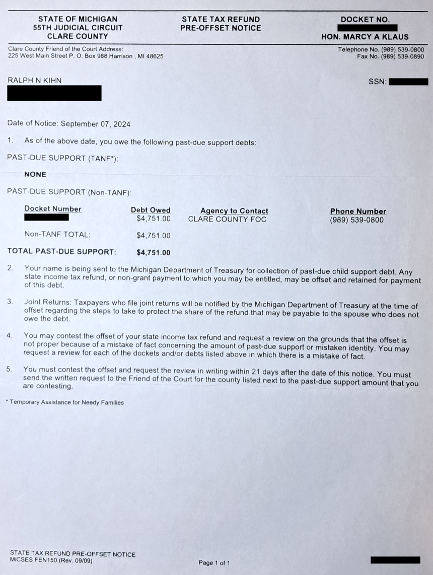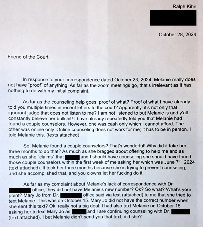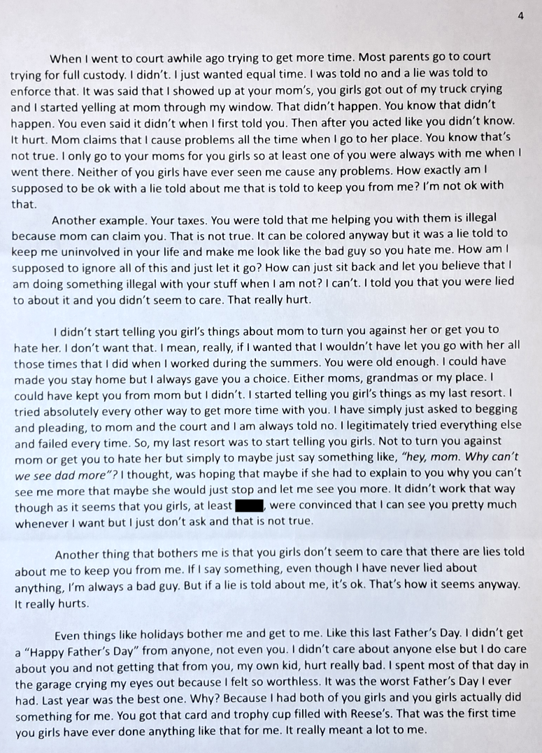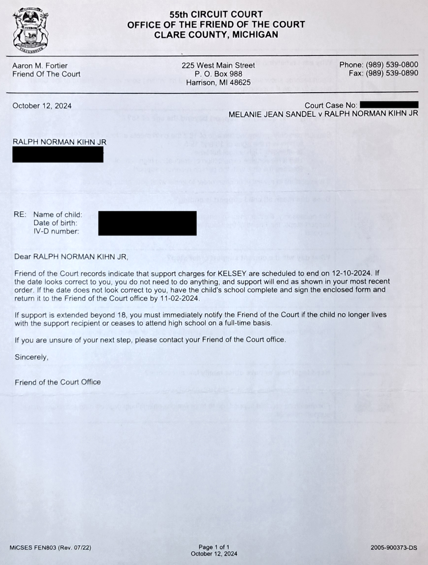 Another letter from my caseworker. They still don’t give a shit. Evil Baby Mama does what she wants.