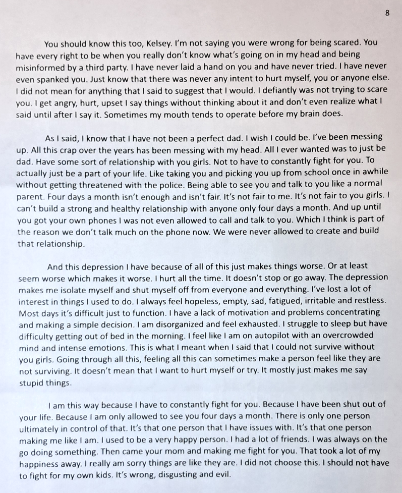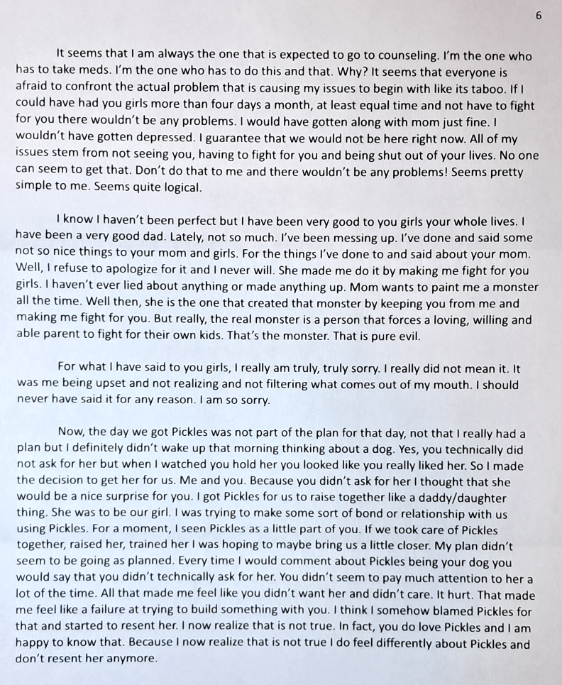 This is a letter from my counselor. Attached is also a letter I had written for my daughter. Trying to explain things to her. I am supposed to talk to her and explain my behavior to them(her). How? Evil Baby Mama is the cause of my behavior. I’m not supposed to talk about their mother. It’s kind of like one of those catch 22 things.