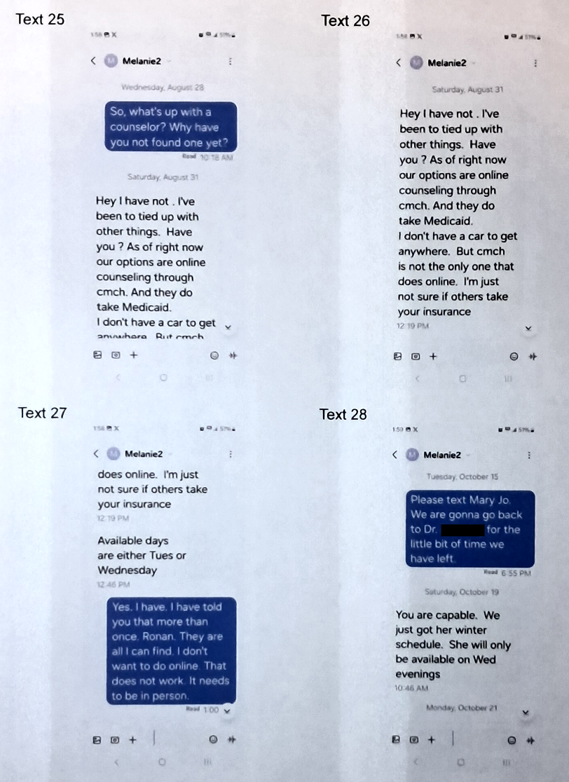 This says that me and my daughter continue our counseling and video parenting time.