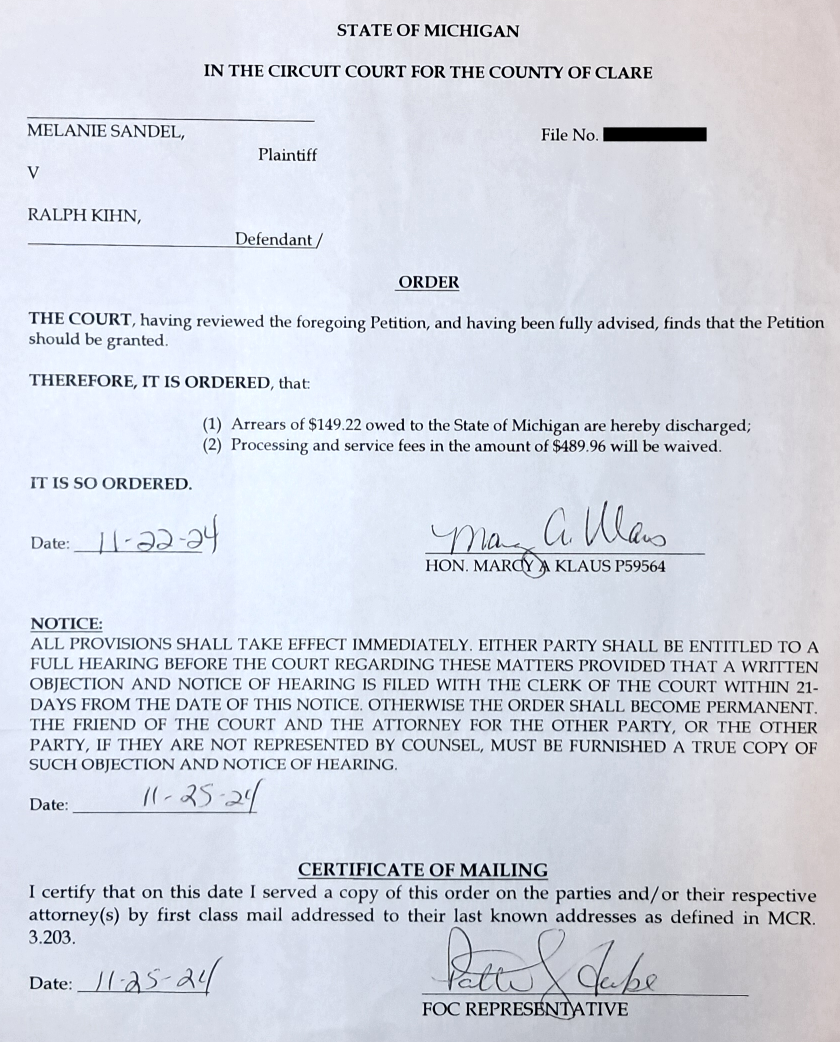 I still had some child support that I owed that could be waived. I filled out the forms. It got waived. I don’t remember how much. They didn’t waive it all though. I still owe about 3k.