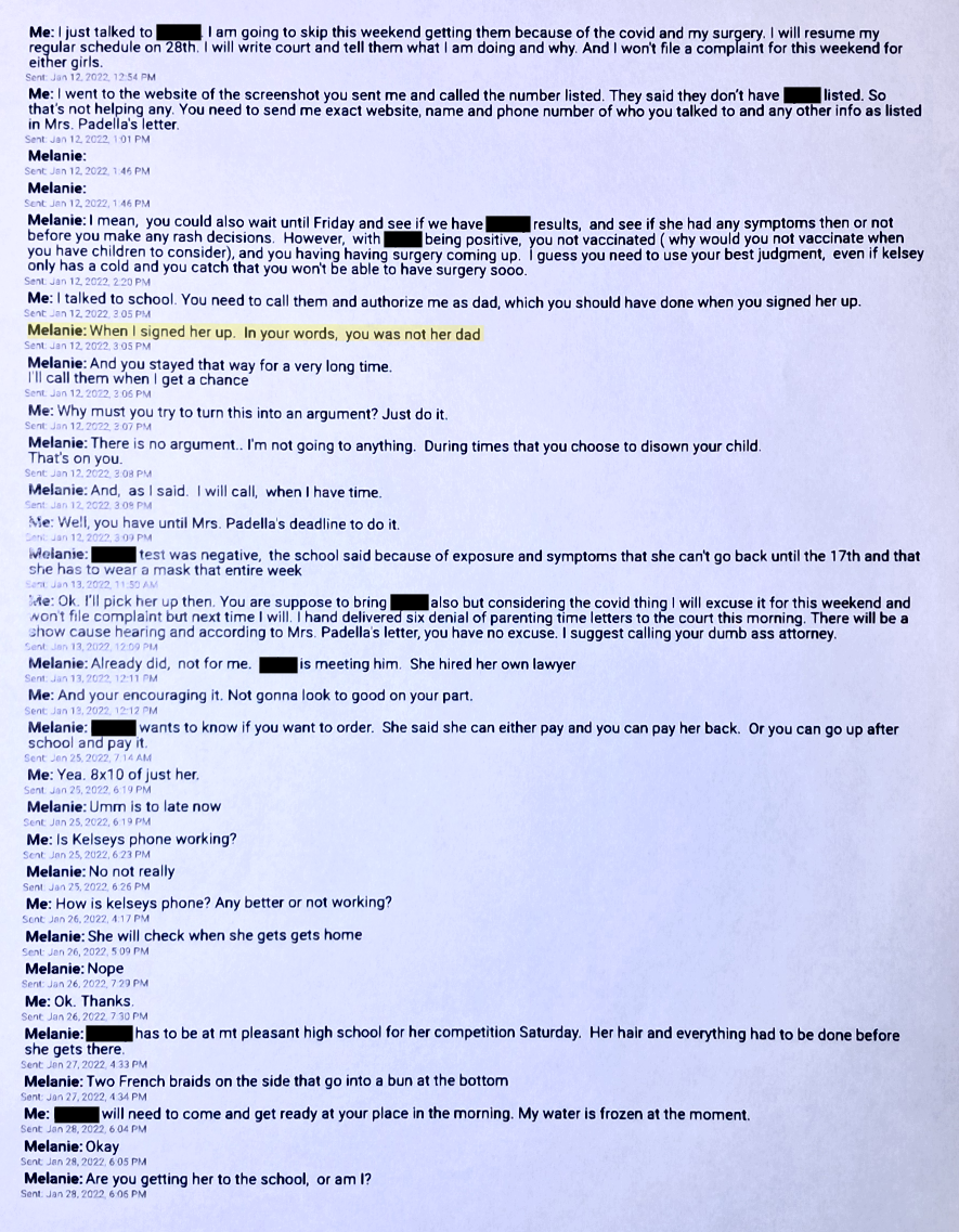 In these texts, first, Evil Baby Mama argues with me, again, about my birthday. This isn’t the first time Evil Baby Mama has argued with me about birthdays. Per the court order and the court’s “Guidelines”, parent’s birthday is a recognized holiday starting at 8am and ending at 8pm, one day. If my girls are in school the time would be from 4pm to 8pm. Evil Baby Mama knows this. Evil Baby Mama has always known this. It is in the guidelines that Evil Baby Mama has a copy of as do I. Evil Baby Mama tried this in 2020. Evil Baby Mama only did this to keep my girls from me as much as she could. I had to get my girls whenever the court allowed or I would have never seen them. Evil Baby Mama would not allow anything past the court order.