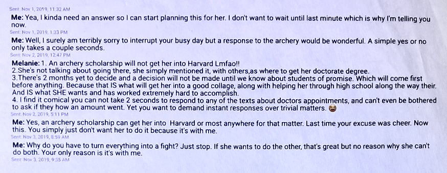 I really was very excited for her getting into this. I was thinking big for her. As you can see from the texts I was thinking scholarships if she could get good enough. Harvard has an archery team.