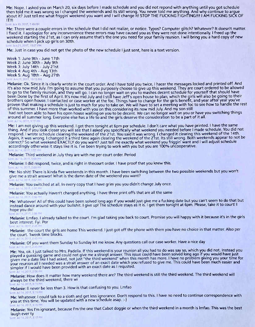 I also attempt, again, to reason with Evil Baby Mama about the little time I have my girls, only 93 days. She didn’t care. Instead accused me of not letting her have girls for Mother’s Day when that’s not even true.