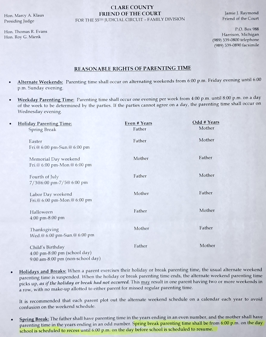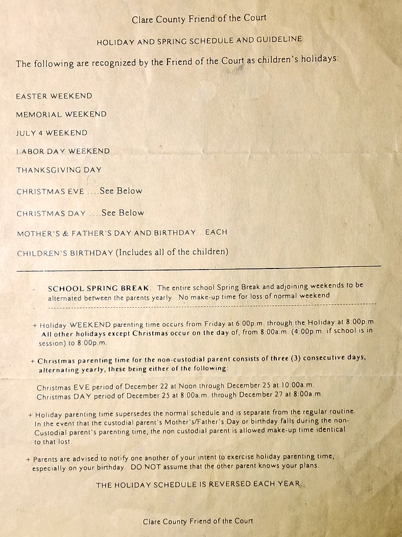 For example, Halloween. In the Yellow version, Halloween is not recognized as a holiday, therefore, Evil Baby Mama would not let me have our girls on Halloween. Evil Baby Mama did let me have our girls once for Halloween in 2010. That was it. Never again. I did, however, have my girls two more times for Halloween but that was only because Halloween happened to fall on my weekend otherwise those two times would have never had happened. Evil Baby Mama let me have our girls for Halloween only ONCE in their entire childhood. I asked. I asked many times. Evil Baby Mama always told me no.