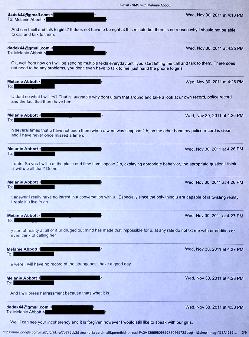 This bullshit is me, again, trying to get Evil Baby Mama to let me call and talk to my girls. Evil Baby Mama wouldn’t let me.